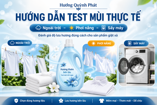 Trong quá trình lựa chọn mùi hương cho sản phẩm giặt xả, việc test thực tế ngoài trời, khi phơi nắng và khi sấy máy là bước rất quan trọng để đánh giá đúng hiệu quả lưu hương. Công ty Hương liệu Hương Quỳnh Phát là đơn vị nhập khẩu và phân phối hương liệu uy tín, chất lượng, chuyên cung cấp các dòng hương liệu tạo mùi thơm, hương liệu công nghiệp và hương liệu cho giặt xả phù hợp cho nhiều định hướng sản phẩm khác nhau, từ phổ thông đến cao cấp.