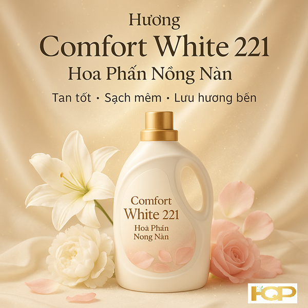 Hương Comfort White 221 chính là lựa chọn lý tưởng cho các nhà sản xuất đang tìm kiếm profile hương hoa phấn nồng nàn, tiệp thị hiếu đại chúng và dễ tạo dấu ấn thương hiệu.